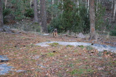 Jag frågade när vi kom dit om det fanns en risk att hundarna kunde smita ur hägnen, med tanke på Hugos intresse för att hitta egna vägar i livet, men nej då, det fanns ingen risk att det kunde ske.